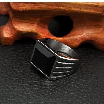 SKU: Titanium Steel - RT66Titanium Ring W/Black Stone – RT66