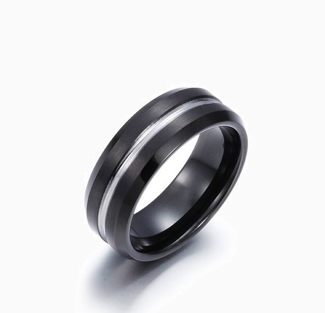 - This is a Black Tungsten Men’s Brushed Finish Stripe Wedding Band Ring