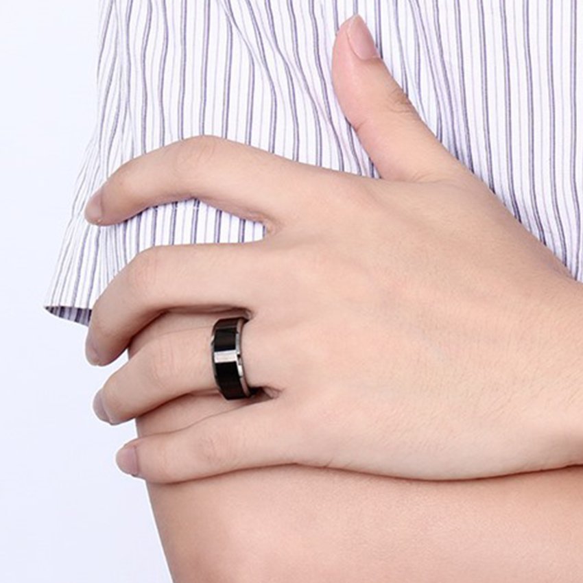 - This is a Black Tungsten Men’s Brushed Finish Stripe Wedding Band Ring