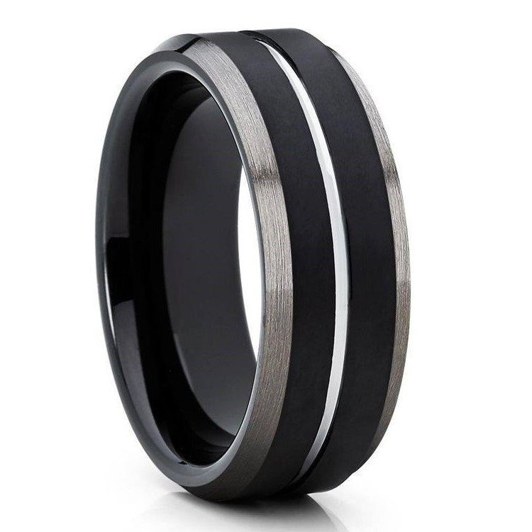 - This is a Black Tungsten Men’s Brushed Finish Stripe Wedding Band Ring